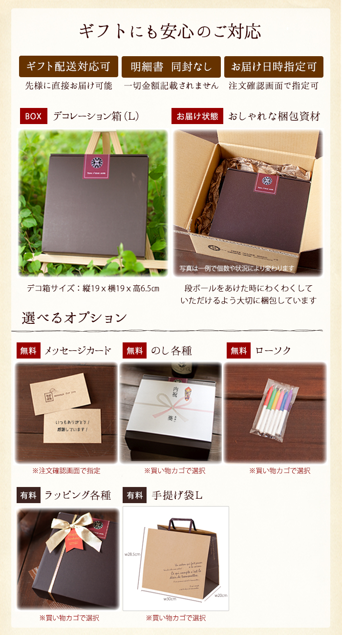 ◆お選びいただける無料サービス:メッセージカード・キャンドル・のし