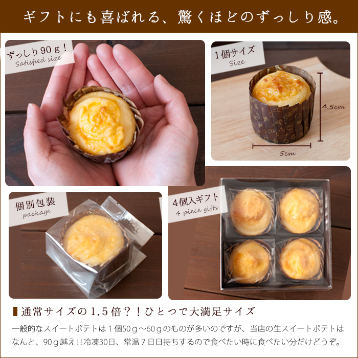なめらかスイートポテトと、とろ~りとろけるカスタードクリームが2層になった生スイートポテトです。